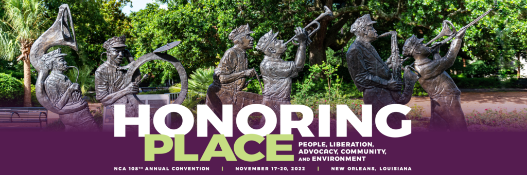 The American Society for the History of Rhetoric (ASHR) invites submissions in the form of individual papers, paper sessions, and panel discussions for the 108th NCA Annual Convention, “Honoring PLACE: People, Liberation, Advocacy, Community and Environment,” to be held November 17-20, 2022 in New Orleans, LA. Convention Central will open for submissions on January 10, 2022. All Submissions must be uploaded by Wednesday, March 30, 2022 at 11:59 PM (PST).